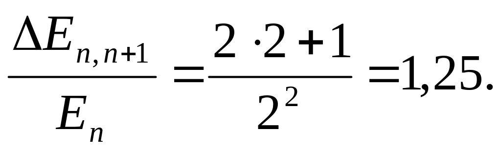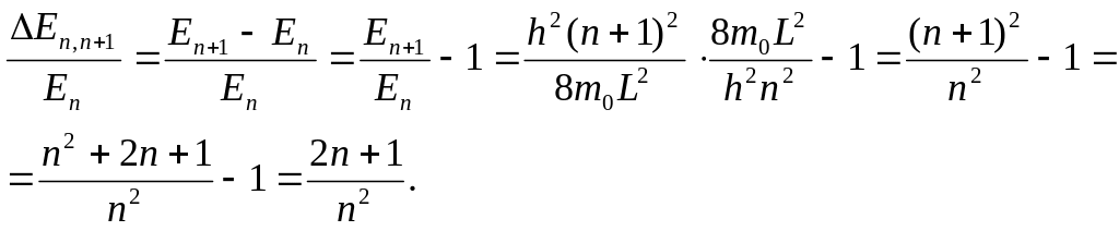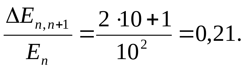 Тогда соотношение разности соседних энергетических уравнений ΔEn, n+1 к энергии En частицы