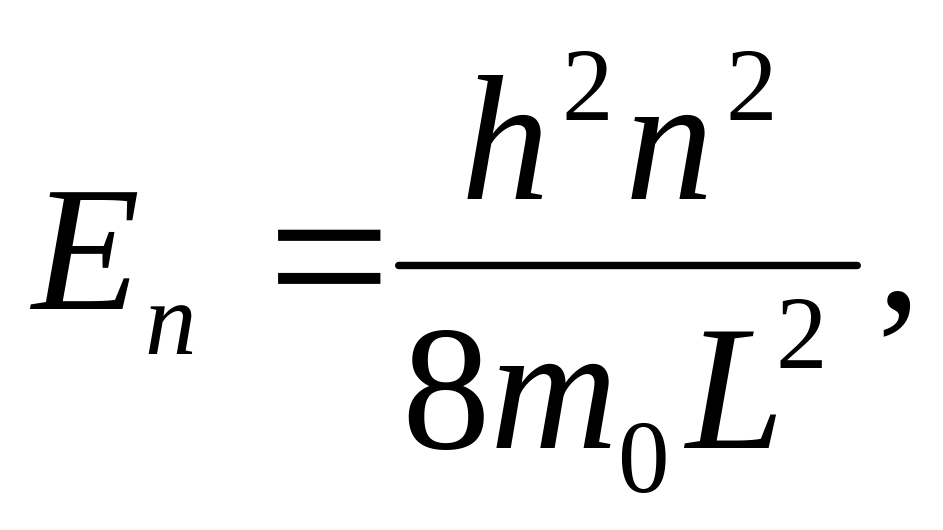 где h — постоянная Планка; n — номер уровня энергии; m0 — масса покоя частицы; L — ширина одномерной потенциальной ямы. |