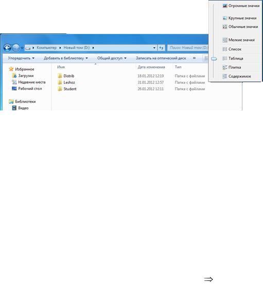 Рис. 10. Изменение вида отображения файлов и папок