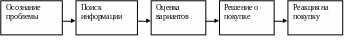 Теперь мы с вами готовы рассмотреть этапы, которые покупатель преодолевает на пути к принятию решения о покупке и ее совершению. На рис. 34 представлено пять этапов, через которые проходит потребитель: осознание проблемы, поиск информации, оценка вариантов, решение о покупке, реакция на покупку. Из этой модели следует, что процесс покупки начинается задолго до совершения акта купли-продажи, а ее последствия проявляются в течение долгого времени после совершения этого акта. Модель нацеливает деятеля рынка на внимание к процессу в целом, а не только к этапу принятия решения18.