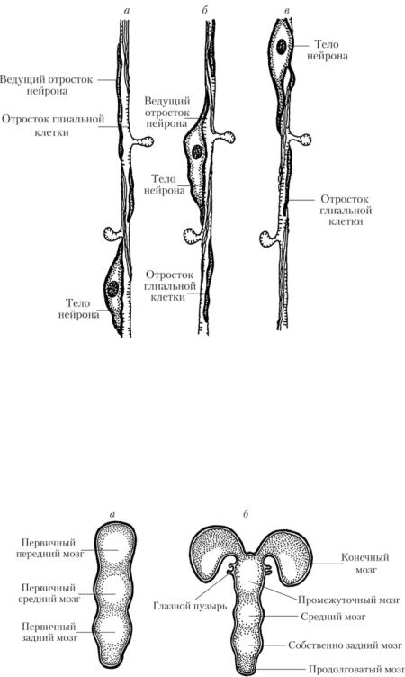 Рис. 4.6. Стадии трех (а) и пяти (б) мозговых пузырей