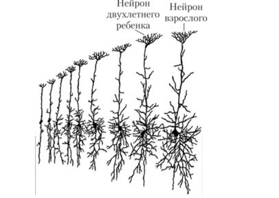 Рис. 4.8. Развитие дендритного дерева после рождения