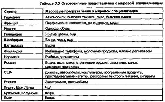 Этот список можно продолжить, представив стереотипы в общественном сознании о стране и лучшем в мире товаре (табл. 6.6).