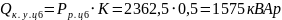 По полученному значению выбираем компенсатор реактивной мощности 2×1350 кВАр КРМ 6,3-10,5 (УКЛ56, УКЛ57) - 1 350 кВАр (производства «Хомов электро»).