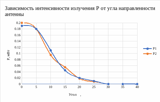 Таблица 2. Зависимость интенсивности излучения от направленности антенны