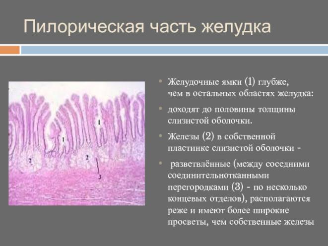 Сравнение препаратов фундального и пилорического отделов желудка