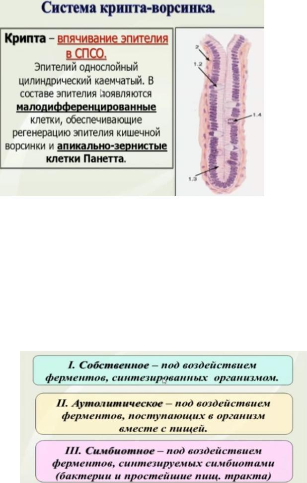 14. Типы пищеварения. Строение кишечной ворсинки.