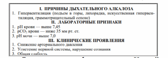 Респираторный (газовый) алкалоз (табл. 12.16) развивается при усиленной вентиляции легких, при поражении нервной системы, эмоциях, отравлениях, у беременных женщин и при подъеме на высоту