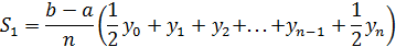 приближенно, разбивая соответствующую фигуру на nкриволинейных трапеций и заменяя каждую из них соответствующей прямолинейной трапецией, то есть по формуле: