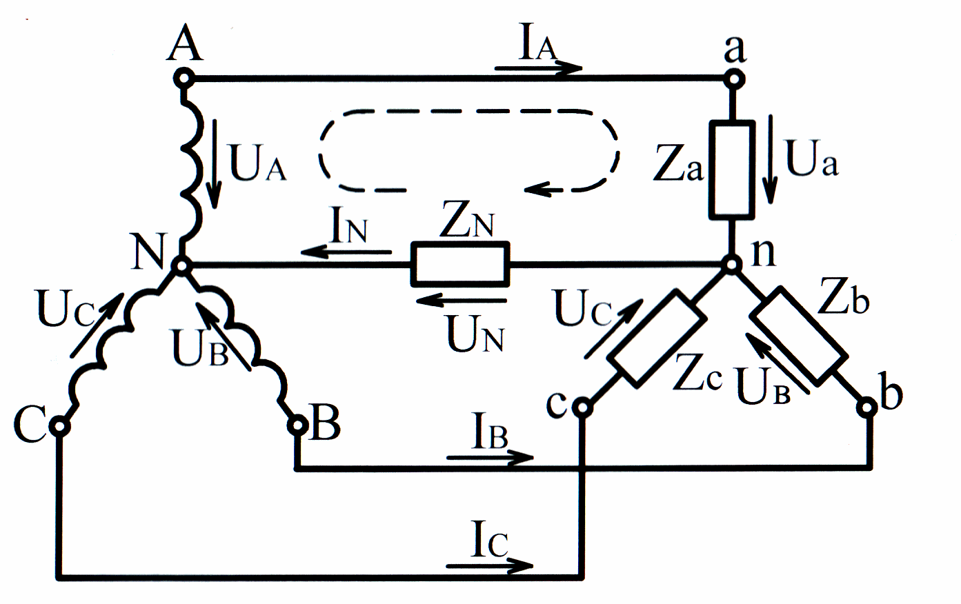 6.5.2. Трехфазная цепь с нулевым проводом, сопротивление которого .