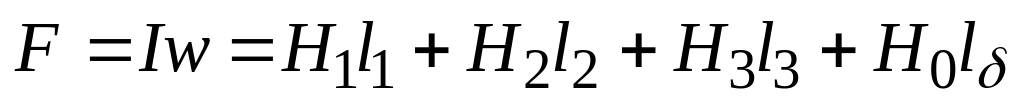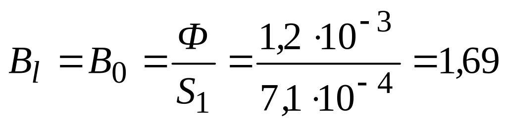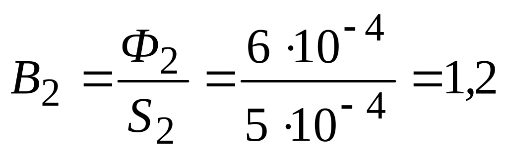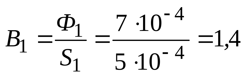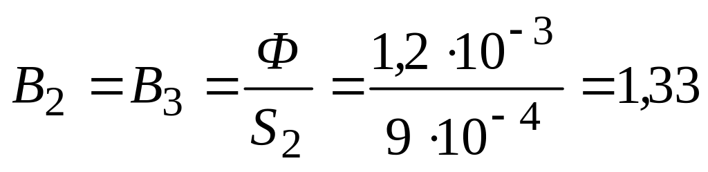 Определив магнитные потоки, находим магнитную индукцию во всех участках магнитной цепи: