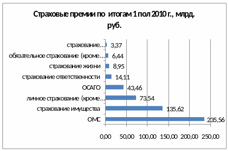 Рисунок 1: Страховые премии по итогам 1 пол 2010 г., млрд. руб.2