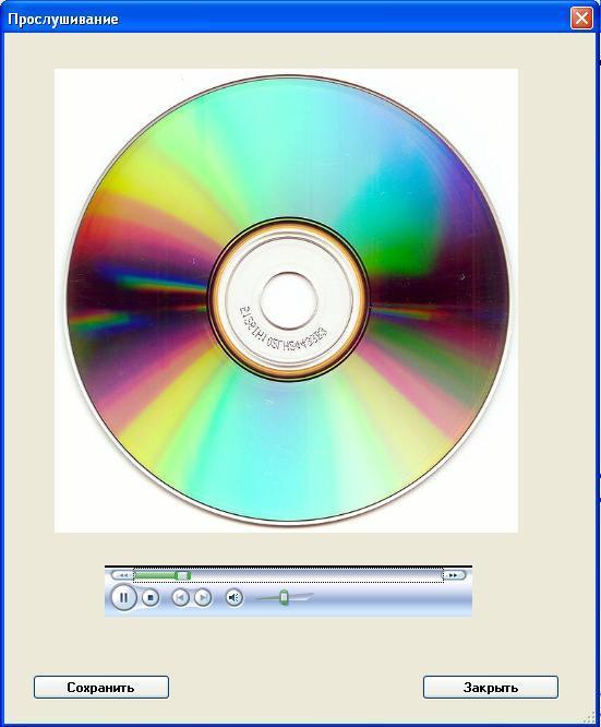 При нажатии кнопки Прослушать в каталоге Аудио, для проигрывания открывается встроенный медиа плеер, он обладает функциональными возможностями Window Media Player’a: