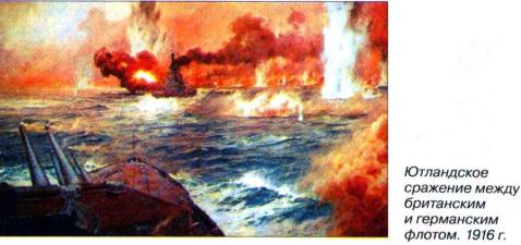 Борьба на истощение. Становилось очевидно, что войну выиграет не фронт, а тыл. Началась борьба на истощение. Германское побережье было блокировано британским флотом. Немцы пытались ответить блокадой на блокаду. С помощью подводных лодок они атаковали торговые суда противника. Однако после гибели пассажирского корабля «Лузитания» в 1915 г., когда Соединенные Штаты пригрозили вступить в войну, Германия была вынуждена на время ограничить масштабы подводной охоты. 31 мая 1916 г. у полуострова Ютландия произошло крупнейшее в истории морское сражение, в котором столкнулись флоты Германии и Великобритании. Несмотря на решительные усилия, немцы так и не смогли нанести поражение британцам.