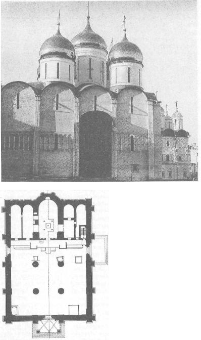 В научной литературе давно уже идет дискуссия, где раньше появилась ступенчатая конструкция сводов — во Пскове или в Северо-Вос- точной Руси, и, следовательно, кто на кого оказал в этом отношении влияние. Более ранние примеры подобной системы (Пятницкая церковь в Чернигове, начало XIII в.), по-видимому, могут не приниматься в расчет, так как связи с разгромленной монголами Южной Русью почти прервались. К сожалению, памятники архитектуры 1-й половины XIV в. ни в Твери, ни в Москве до сих пор не изучены, и вопрос об источниках появления этой системы в русском зодчестве XIV в. так и остается пока открытым.