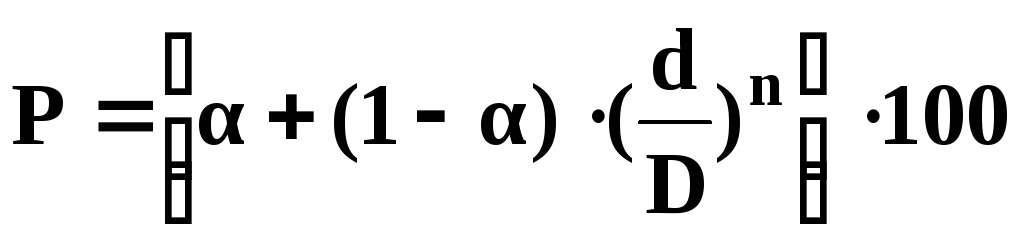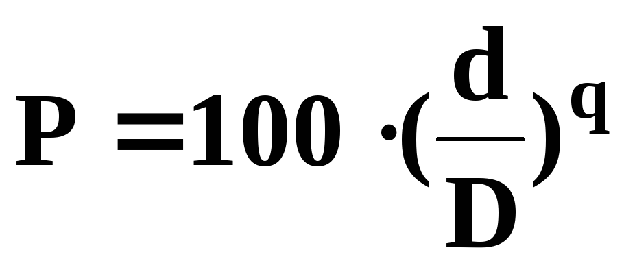 где P– содержании фракции с размером зерна меньшеD, %;D– размер самой крупной фракции;d– размер любой заданной фракции;q– показатель степени, зависящий от формы зерен и характера их поверхности (q= 0,33-0,5).