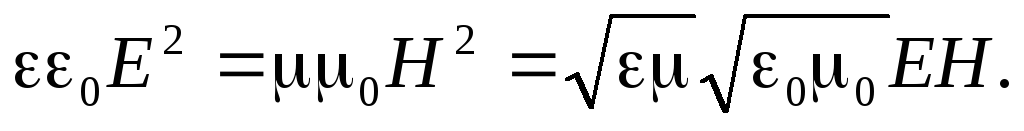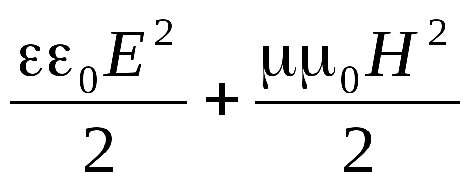 Разумно предположить, что энергия электромагнитной волны складывается из энергии электрического поля волны и магнитного. Тогда энергия единицы объема — объемная плотность энергии — может быть представлена такой суммой (см. 4.14 и 10.11):