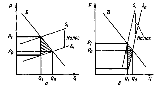 Рис. 26 - Распределение налогового бремени при эластичном (а)