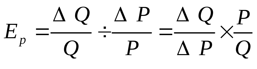 Если обозначить цену Р, а величину спроса Q, то показатель (коэффициент) ценовой эластичности спроса Е р равен: