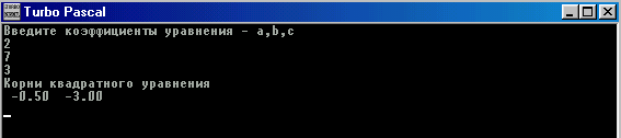 Рис. 7.9.1. Программа решения квадратного уравнения и результаты его решения.