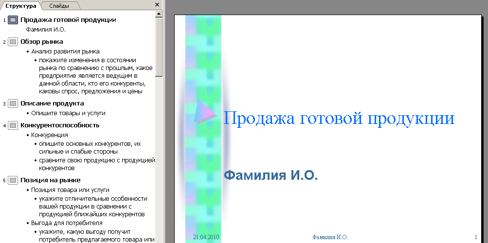 8.2.1. Создание новой презентации с помощью Мастера автосодержания