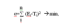 Для такой постановки задачи ее математическая формулировка может выглядеть следующим образом. Имеется зависимость переменной E от переменной X, полученная путем эксперимента E=F(X). Требуется построить аналитическое описание для функции T =F(X), где T(X) - некоторая функция от X, наилучшим образом описывающая наблюдаемые экспериментальные значения E. Обычно T =F(X) следует выбирать так, чтобы минимизировать сумму квадратов разностей между экспериментальными и теоретическими значениями E и T, т.е. минимизировать некоторый функционал: