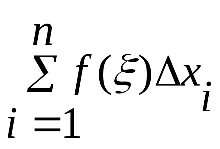 На каждом отрезке разбиения [xi-1., xi] выбрана некоторая точка ζi и положено, что ∆xi = xi - xi-1, где i = 1, 2, ..., п. Тогда сумму вида: