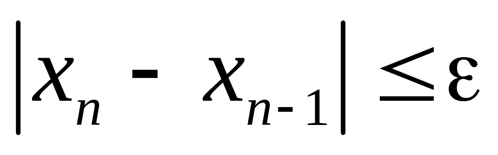 до тех пор, пока не будет выполнено неравенство (здесь - заданная абсолютная погрешность вычисления корня). |