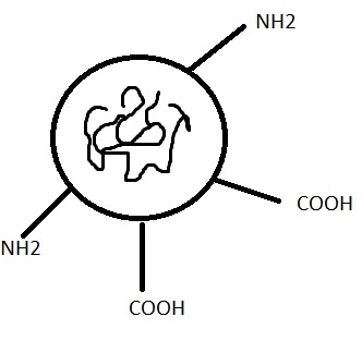 Карбоксильная группа, способная к диссоциации с образованием Н ионов , придает белку характер слабой органической кислоты. Наличие в молекуле белка NH2 - группы определяет основные свойства белка , поскольку к аминогруппе может присоединится протон ( Н – и ОН ) с образованием иона R-NH3+