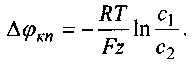 У цій роботі вимірюється різниця потенціалів між двома мідними електродами, зануреними в розчини мідного купоросу різних концентрацій (див. рис. 4.45б), тобто електрорушійна сила концентраційного елемента.