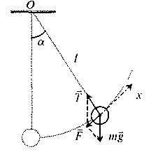 Сила, яка спричиняє коливання математичного маятника, не є пружна за своєю природою. Дійсно, повертаюча сила F спрямована по дотичній до дуги кола радіуса l, напрямлена до положення рівноваги і пропорційна зміщенню х: