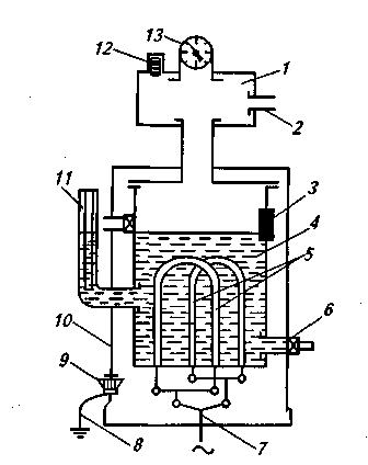 Емкость с очищенной водой помещают на источник нагрева. Воду доводят до кипения. Образующийся пар через шланг и распыляющее устройство поступает в посуду, предназначенную для стерилизации.