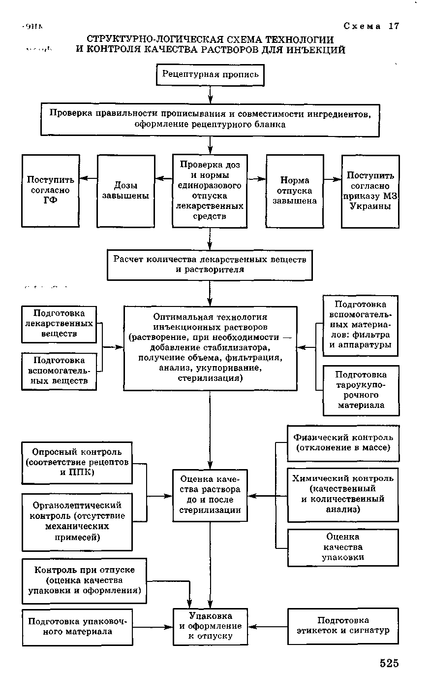 Структурно-логическая схема технологии и контроля качества растворов для инъекций приведена на схеме 17.