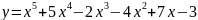 y = x**5 + 5*x**4 - 2*x**3 - 4*x**2 + 7*x - 3