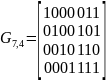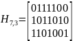 Каждая строка проверочной матрицы соответствует одному проверочному равенству, а коэффициенты задают состав информационных символов, участвующих в проверке. Единица в правой части матрицы указывает номер проверочного разряда.