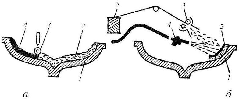 Рис. 8.1. Схемы получения изделий: а – контактное формование; б – напыление