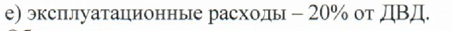 Расходы арендодателя за 1 год, всего в том числе - по управлению(10% от ДВД), налог на имущество (2,0% от стоимости нового строительства с учетом износа (стоимость в затратном подходе), - на страхование (0,1% от стоимости нового строительства (стоимость в затратном подходе) , -плата за землю (5 руб за кв.м в месяц) -резервы(1,85% от стоимости нового строительства (стоимость в затратном подходе), -на эксплуатацию(20% от ДВД),