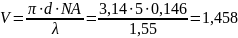 Определим значение нормированной частоты, которая характеризует режим работы ОВ, по формуле 2.3: