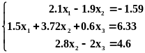 Составить схему алгоритма и программу решения системы линейных уравнений выбранным методом и провести контрольное тестирование на примере, рассмотренном в п. 1.9.5.