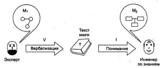 При этом можно выделить две такие смысловые структуры: M1 смысл, который пытался заложить автор, это его модель мира, и М2 смысл, который постигает читатель, в данном случае инженер по знаниям (рис. 13) в процессе интерпретации I. При этом Т - это словесное одеяние М1, т.е. результат вербализации V.