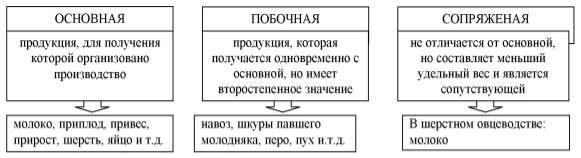 Калькулирование себестоимости продукции животноводства осуществляется, исходя из особенностей его отдельных отраслей. В сельскохозяйственных предприятиях определяют себестоимость основной, побочной и сопряженной продукции животноводства [3] (рисунок 4).