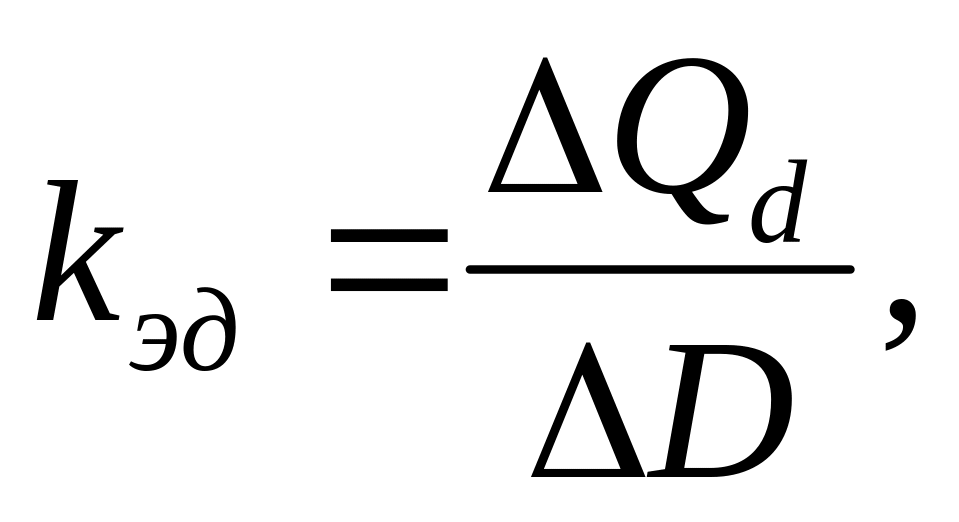 Эластичность спроса по цене, которая показывает, на сколько процентов изменится величина спроса на данный товар, если его цена изменится на 1%. Измеряется ценовая эластичность спроса с помощью коэффициента эластичности (k эц), который определяется отношением процентного изменения величины спроса на товар (ΔQd) к процентному изменению цены этого товара (ΔP):