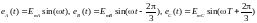 Рис. 1.32. Векторная и временная диаграммы напряжений на выходе трехфазного