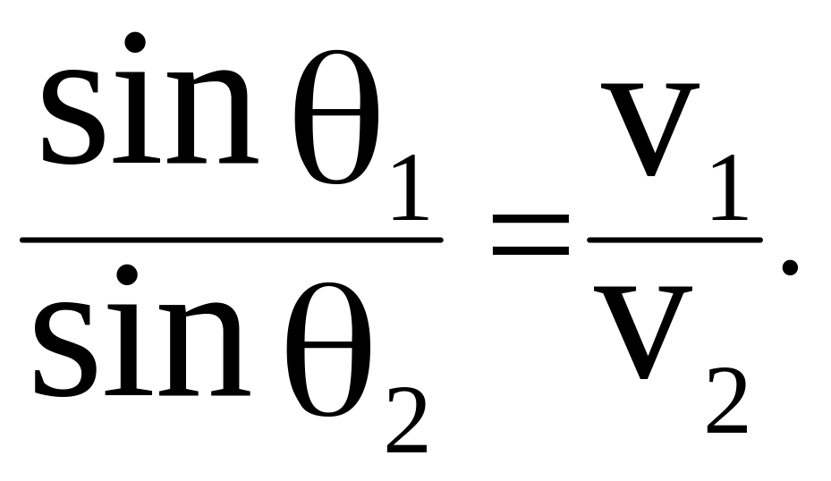 Отношение синуса угла падения к синусу угла преломления равно отношению скорости распространения волны в первой среде к скорости распространения волны во второй среде: