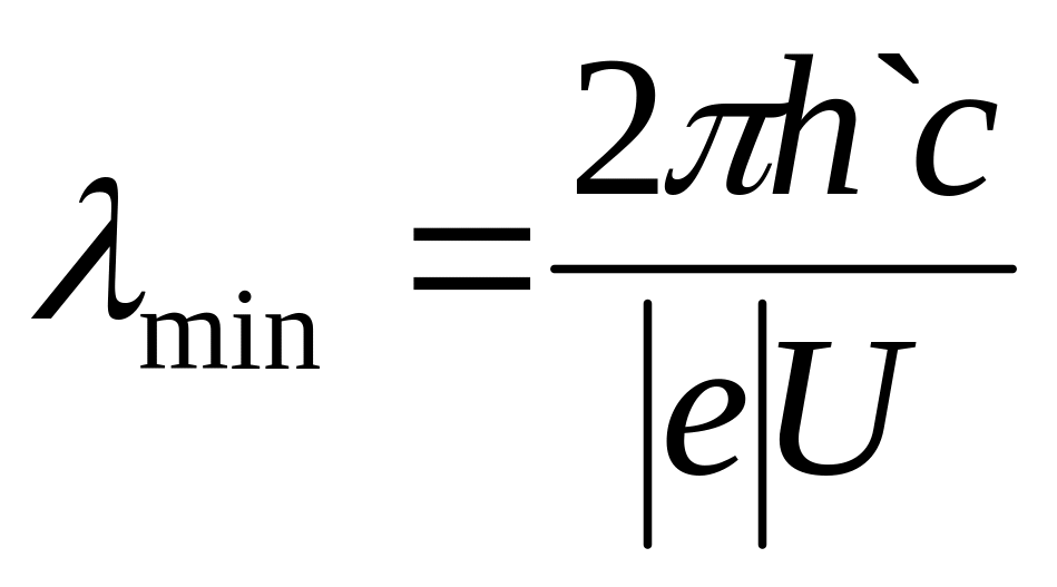• Коротковолновая граница λmin сплошного рентгеновского спектра