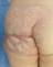 Рис. 40. Рубцовые деформации области ягодицы после перенесенной МГ с изъязвлением (тот-же ребенок, что и на рис)