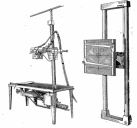 Вертикальная стойка предназначена преимущественна для снимков легких как с решеткой, так и без нее. Кроме того, вертикальную стойку часто применяют для снимков шеи и черепа в положенин больного лежа на столе или сидя у стойки. Для этих снимков решетка стойки может поворачиваться в вертикальной плоскости на ± 180°, а также перемещаться из вертикального положения в горизонтальное.