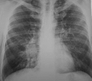 Нарентгенограммахоргановгруднойполостиу21(21,4%)пациентавовремяпервичногообследованияприналичиисоответствующейклиническойкартинывыявлялирентгенологическиепризнакиналичияполостидеструкциисгоризонтальнымуровнемжидкости,окруженнойперифокальнойзонойинфильтрациилегочнойткани,чтотрактовалоськакпроявленияабсцессалёгкогоилиабсцедирующейпневмонии.Припоследующемкомпьютерно-томографическомисследованиибыловыявленоновообразованиялёгкого.