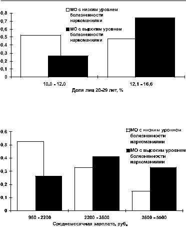 Как видно из приведенных в табл. 32 данных, наркологическая ситуация выглядит более благополучной в муниципальных образованиях с высоким уровнем безработицы. Это еще раз подтверждает хорошо известный факт: наркомании более распространены в территориях с высоким уровнем жизни населения.
