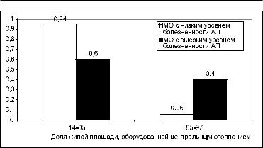 психозами (АП) в зависимости от доли жилой площади, оборудованной |